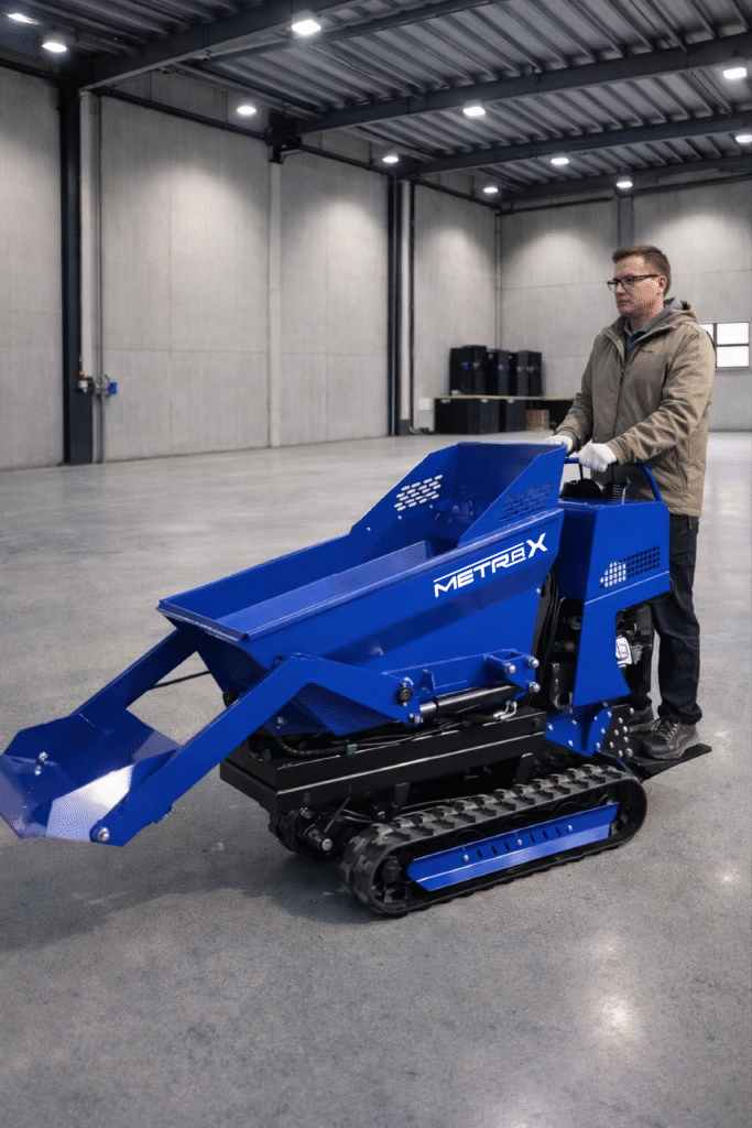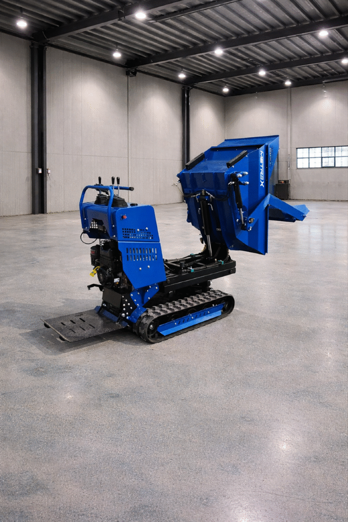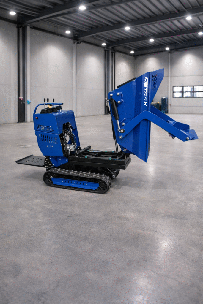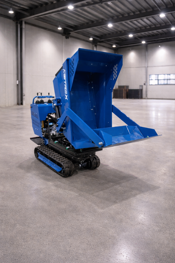 Damperi/utovarivači Damper Gusjeničar ML500, Briggs&Stratton XR950 Was Now 4.799 EUR Sniženo Cijena je izražena s pdv-om. Standardna konfiguracijaModel motora: Motor: Briggs & Stratton XR950Ukupni obujam: 208CCNazivna snaga (kw/o/min): 6.5HP / 3600 o/minVrsta goriva: Benzin 92#Potrošnja goriva (g/kw·h): ≤0,395Kapacitet spremnika za gorivo (L): 3,1Kapacitet ulja (L): 0,6Težina stroja (kg): 406Maksimalno opterećenje (kg): 500DimenzijeDimenzije stroja (mm): 1570 × 865 × 1320 (bez pedala i korita)Dimenzije s koritom i pedalom (mm): 1900 × 865 × 1320Dimenzije kontejnera (mm): 1050 × 730 × 730Širina šasije (mm): 700Širina gusjenica (mm): 180Dužina oslonca gusjenice (mm): 1000Razmak od tla (mm): 110Kapacitet tovarnog sanduka (dm³): 200Hidraulika i performanseNačin kipanja: Hidraulično kipanje koritaKut kipanja (°): 100Brzina kretanja (km/h): 2,88Minimalni radijus okretanja (m): 1,15Međusobni razmak gusjenica (mm): 520Savladavanje nagiba (°): 20Hidraulično ulje: 46# ulje protiv trošenjaSpremnik hidrauličnog ulja (L): 15Glavne komponenteVišesmjerni ventil: 20-20Z1-J2Dvostruka pumpa: HGP-F4R/4RMotor hidraulike: BMSY-200Gumene gusjenice: 180 × 60 × 38 Quantity Enter an amount € Add to Cart Add to Cart Možda će vam se također svidjeti Sale Damperi/utovarivači Utovarivač M380 Gusjeničar, HONDA GX690, Korpa 4-u-1, Automatsko niveliranje 7.300 EUR Compare to 8.450 EUR